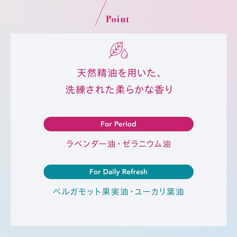 ※アロマシューター for Period:ジアセチル、アセトインに対して。全てのニオイを消臭するわけではありません。