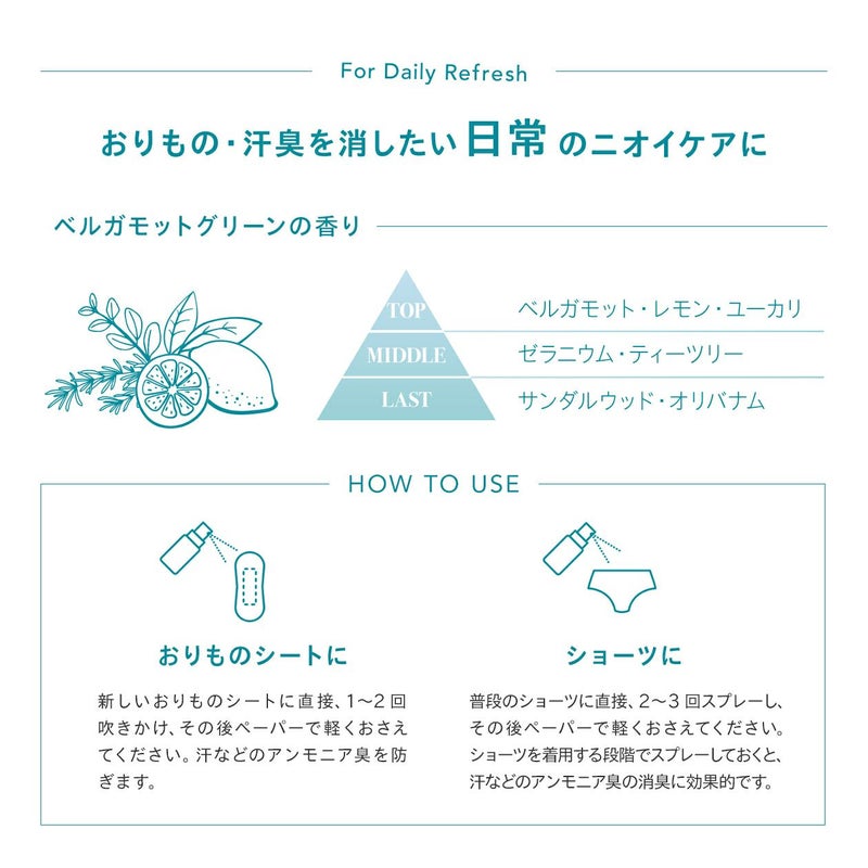 吸水ショーツ・ナプキンに直接シュッ!デリケート臭を消臭するアロマスプレー