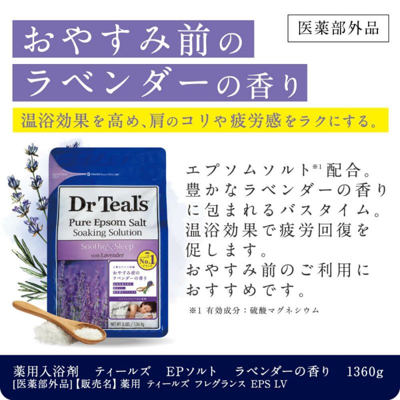 エプソムソルト(有効成分:硫酸マグネシウム)配合。豊かなラベンダーの香りに包まれるバスタイム。