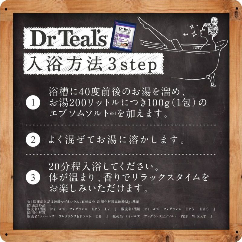 エプソムソルト(硫酸Mg:基剤)とエッセンシャルオイル(ローマカミツレ花油:香り成分)配合。