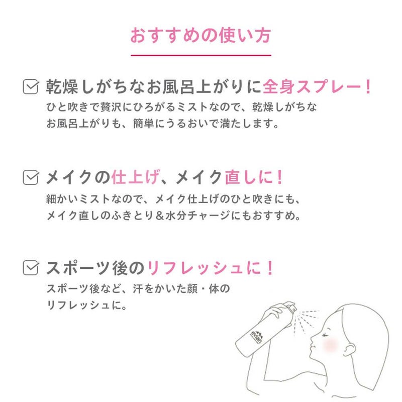 フレンチアルプス生まれの100%ナチュラルミネラルウォーター。 ミネラルを豊富に含んだ微粒子のスプレーが、お顔をはじめ全身をうるおいで満たします。 毎日のスキンケアステップの前にひと吹きしてあげることで、その後の化粧品の浸透力※をサポートしてくれる化粧水です。 ※角質層まで アルコール、防腐剤、鉱物油、着色料フリー ご使用方法:お顔から20cm程はなし、スプレーして手のひらでおさえるようになじませてください。