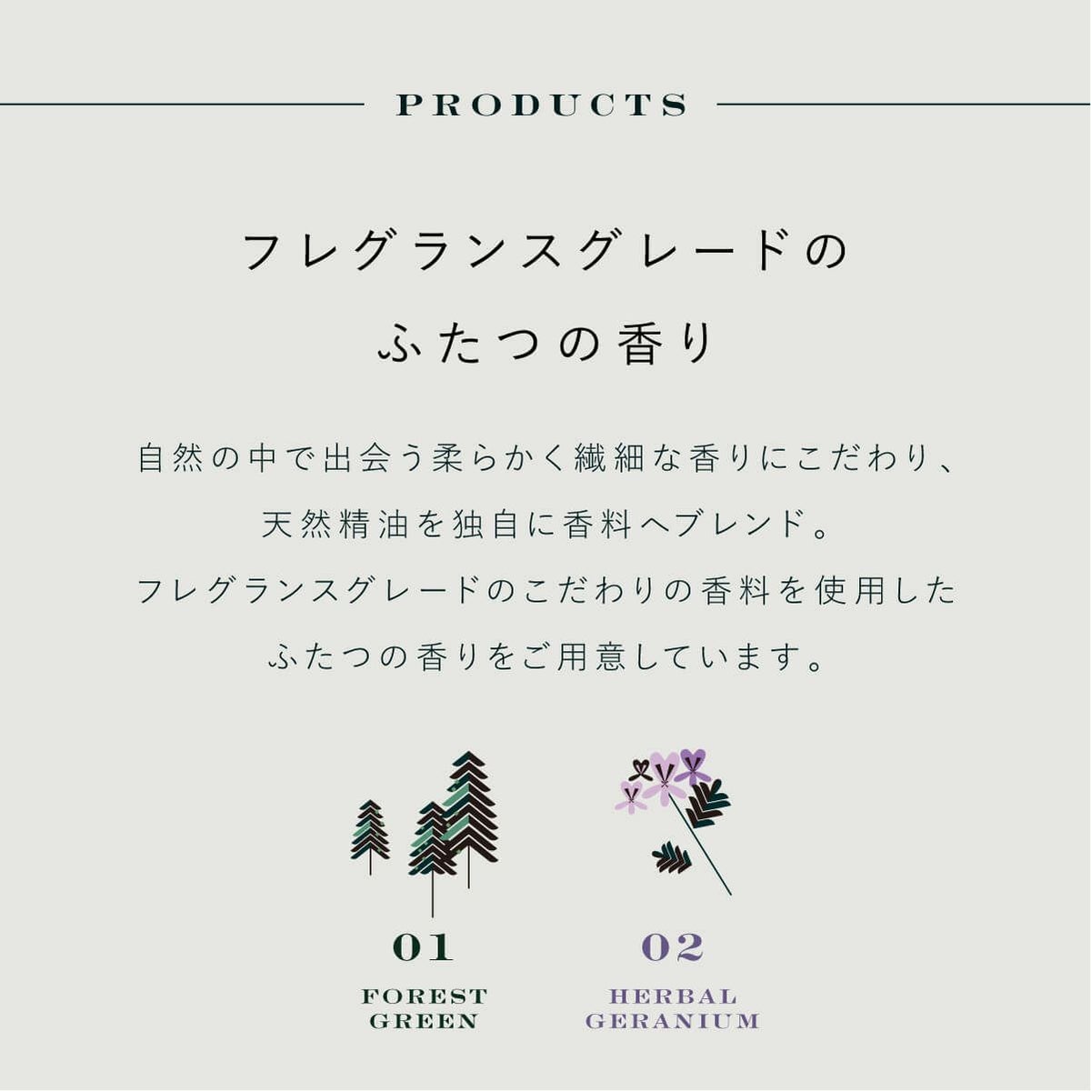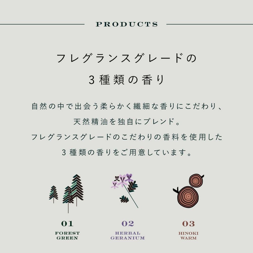 フィトンチッドの力から発想を得て心地のいい香りを追求しました。