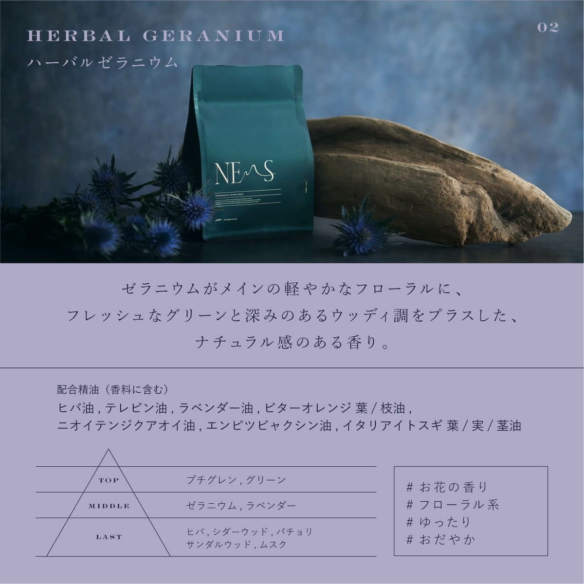 天然精油を独自に香料へブレンドして表現しています。