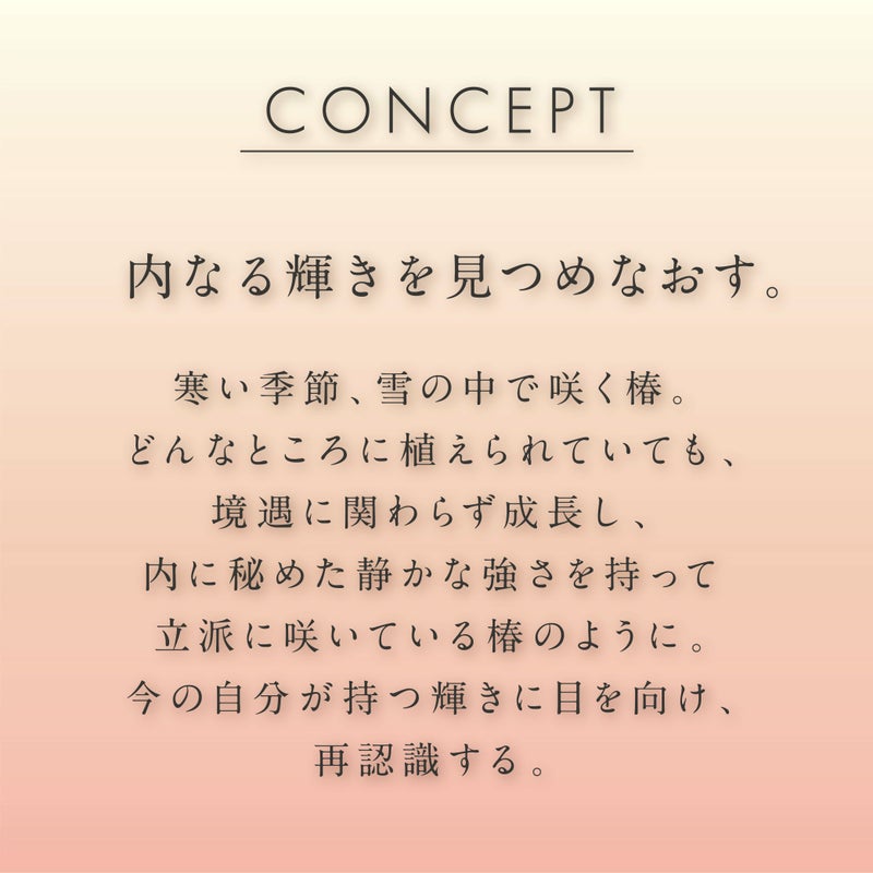 ふんわりとしたレッドフローラルの中に、ピンクペッパーのスパイスがツバキの枝感や女性の強さをもたらす、やわらかさの中に芯の強さを感じ、穏やかで清潔感のあるツバキの香り。