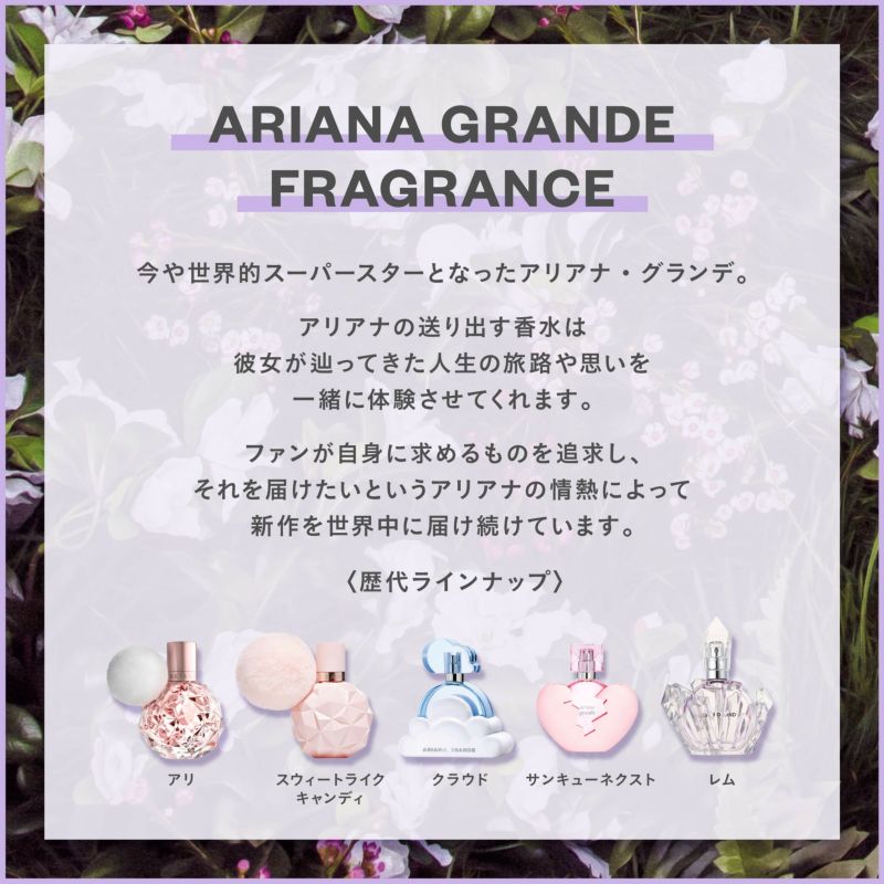 「全ての女性にしなやかさと強さ、自信を持って生きて欲しい」というアリアナのメッセージが込められた香水です。