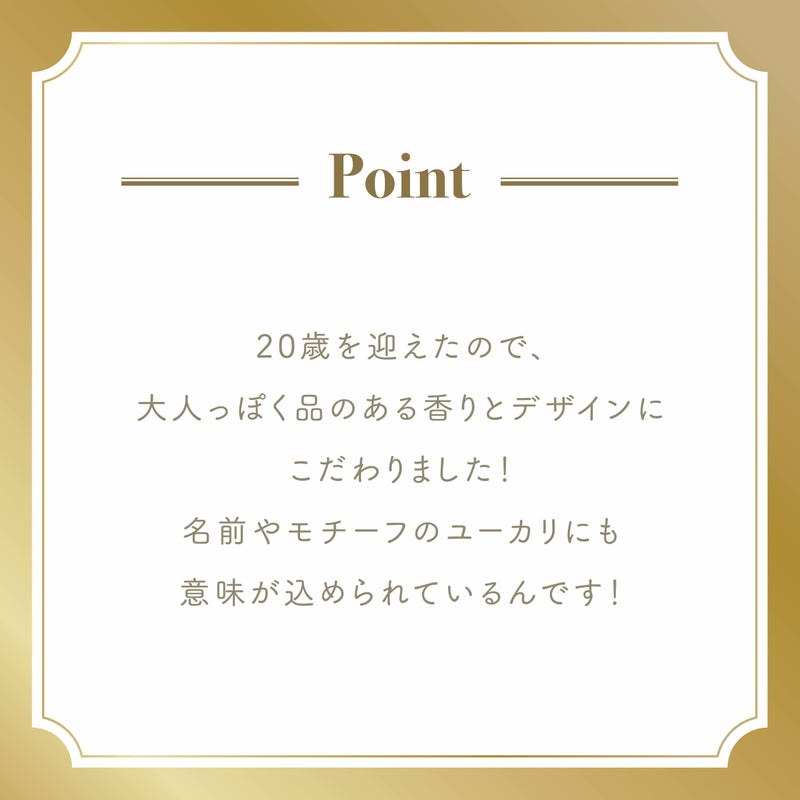 20歳を迎えたので、大人っぽく品のある香りとデザインにこだわりました!