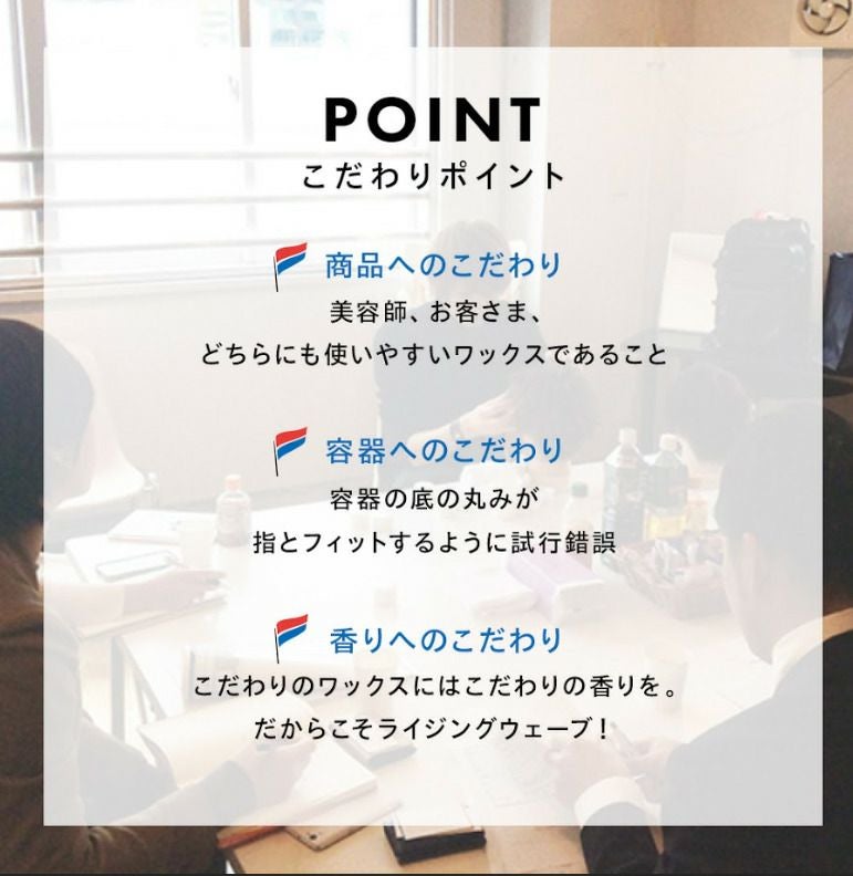 ●フォロワーさんとサロンスタッフから既存ワックスの改善ポイントを集め、ユーザーの使用感に関する悩みを徹底的に改善!いいとこそのまま、更に使いやすく!