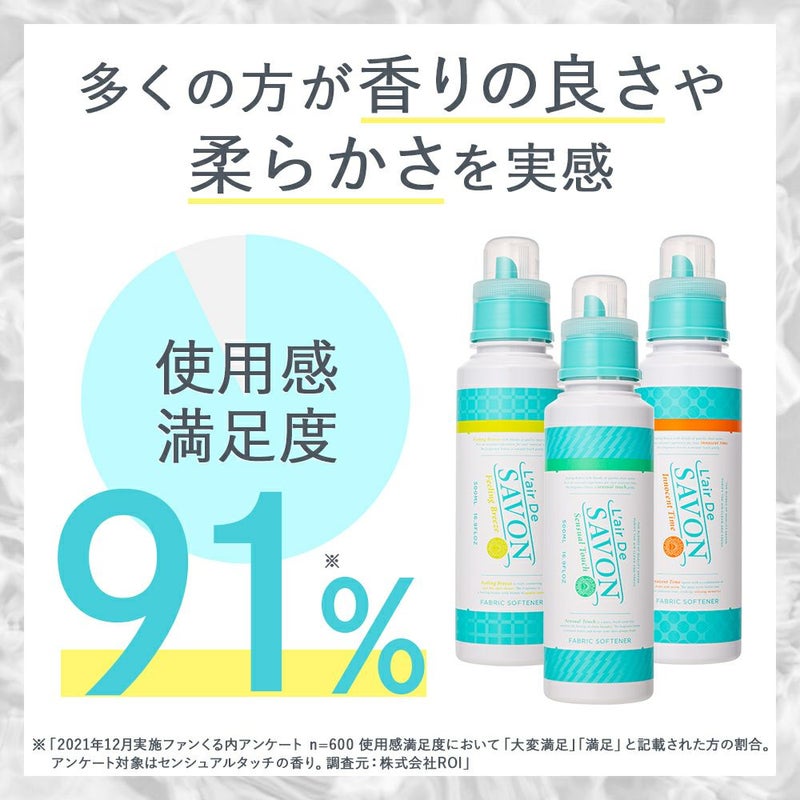 柔軟剤用に最適な製法で作り上げられた香水生まれの香料を使用。 香りのプロである臭気判定士が認めるちょうど良い香り立ち。