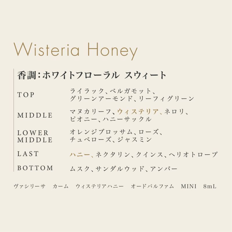 MIDDLE:マヌカリーフ、ウィステリア、ネロリ、ピオニー、ハニーサックル