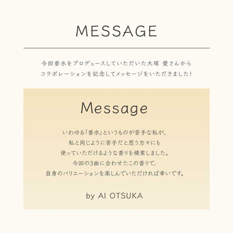 PARFA TUNEは、FITSが様々なアーティストを迎え入れ、オリジナル楽曲とともにオンリーワンの香水を生みだすコラボプロジェクト。19世紀にイギリスで発明された「香階」という伝統的な手法をつかって、音を香りで表現します