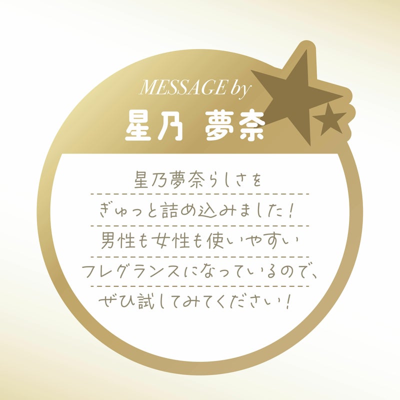 星野夢奈らしさをぎゅっと詰め込みました!男性も女性も使いやすいフレグランスになっているので、ぜひ試してみてください!