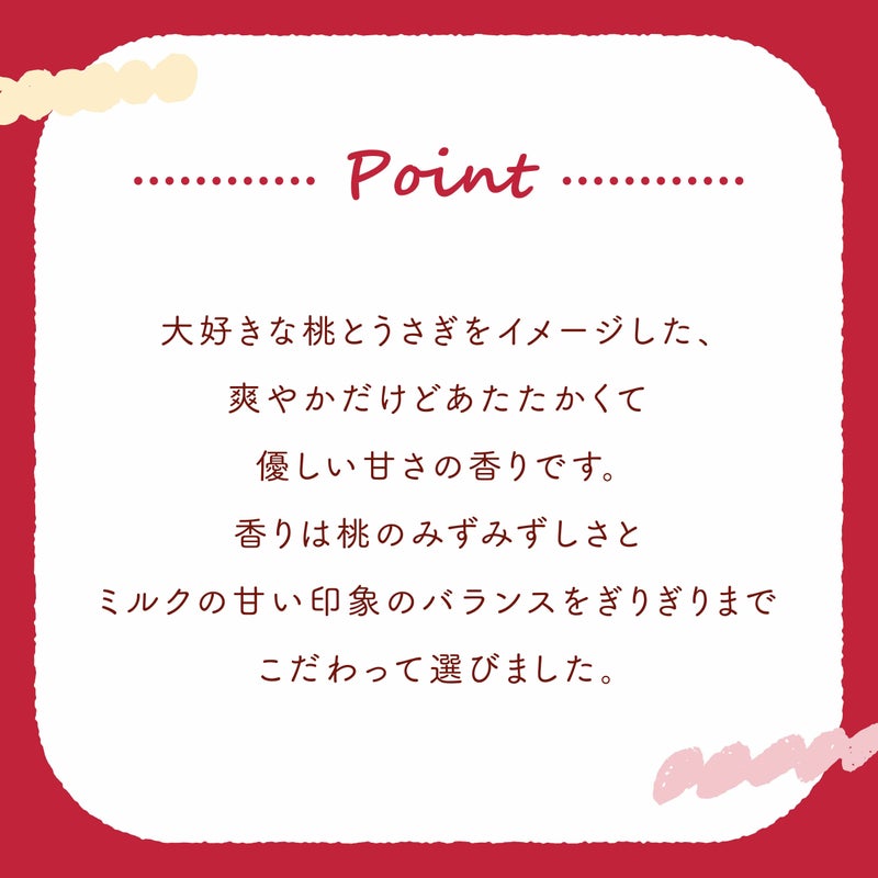 香りは桃のみずみずしさとミルクの甘い印象のバランスを