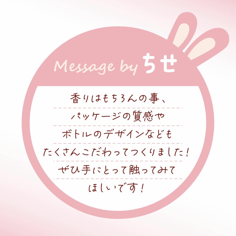 香りはもちろんの事、パッケージの質感やボトルのデザインなどもたくさんこだわってつくりました!ぜひ手にとって触ってみてほしいです!
