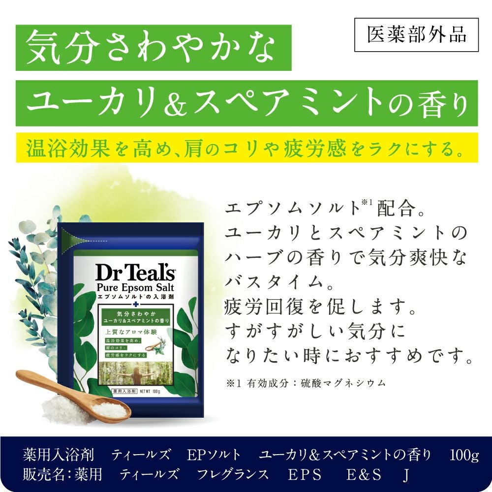 他の画像を見る 母の日ギフト ユーカリとミントが爽やかなエプソムソルト。温浴効果で疲労回復等を促します。 薬用入浴剤 ティールズ エプソムソルト ユーカリ&スペアミントの香り 100g(1回分) 通常価格 ¥ 218 のところ 限定価格 ¥ 218 税込 ラッピング不可 販売を終了しました。 詳細はこちら 詳細を見る