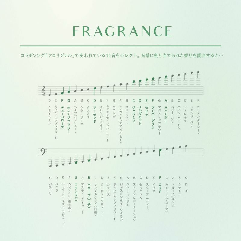 19世紀にイギリスで発明された「香階」という伝統的な手法をつかって、音を香りで表現します。