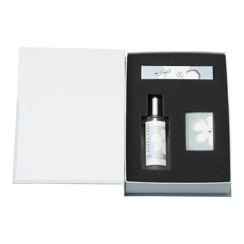 オードトワレ50mL・香水の香りのお香(20本入り)・お香立てをセットにした豪華な限定セット。