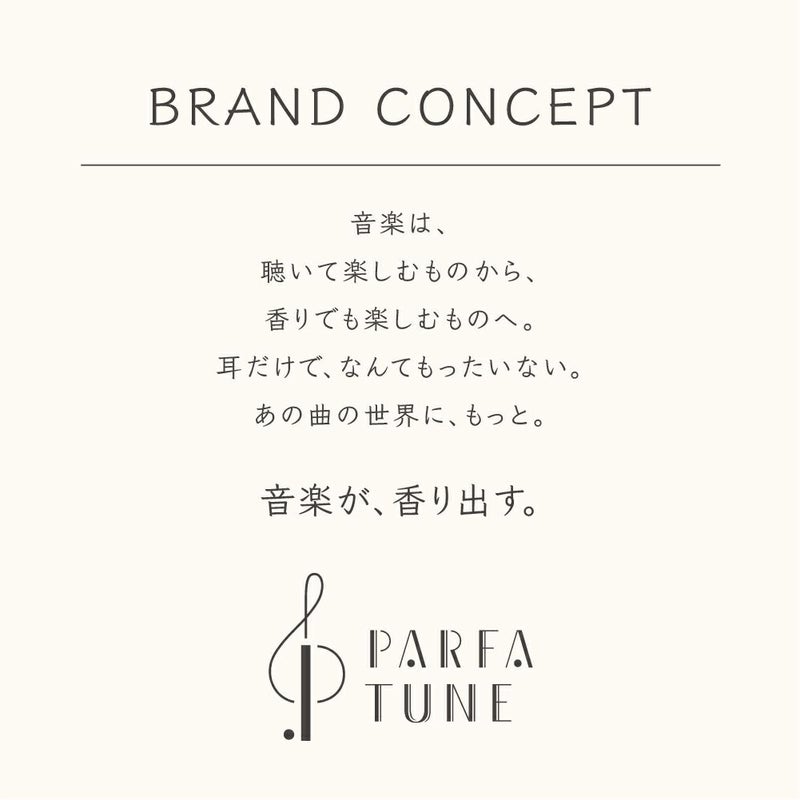 PARFA TUNEは、FITSが様々なアーティストを迎え入れ、オリジナル楽曲とともにオンリーワンの香水を生みだすコラボプロジェクト。19世紀にイギリスで発明された「香階」という伝統的な手法をつかって、音を香りで表現します