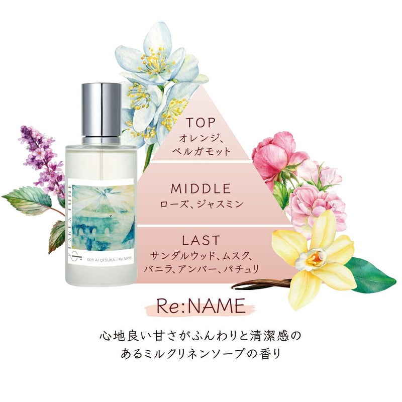 PARFA TUNEは、FITSが様々なアーティストを迎え入れ、オリジナル楽曲とともにオンリーワンの香水を生みだすコラボプロジェクト。19世紀にイギリスで発明された「香階」という伝統的な手法をつかって、音を香りで表現します
