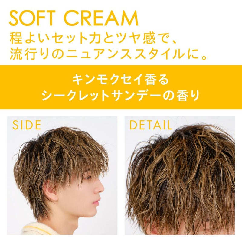 固めすぎないニュアンススタイルを手早く作れる、しっとり髪をまとめて自然な毛流れを演出できるクリームワックス