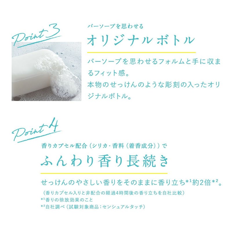 香りカプセル配合でせっけんのやさしい香りをそのままに香り立ち2倍。