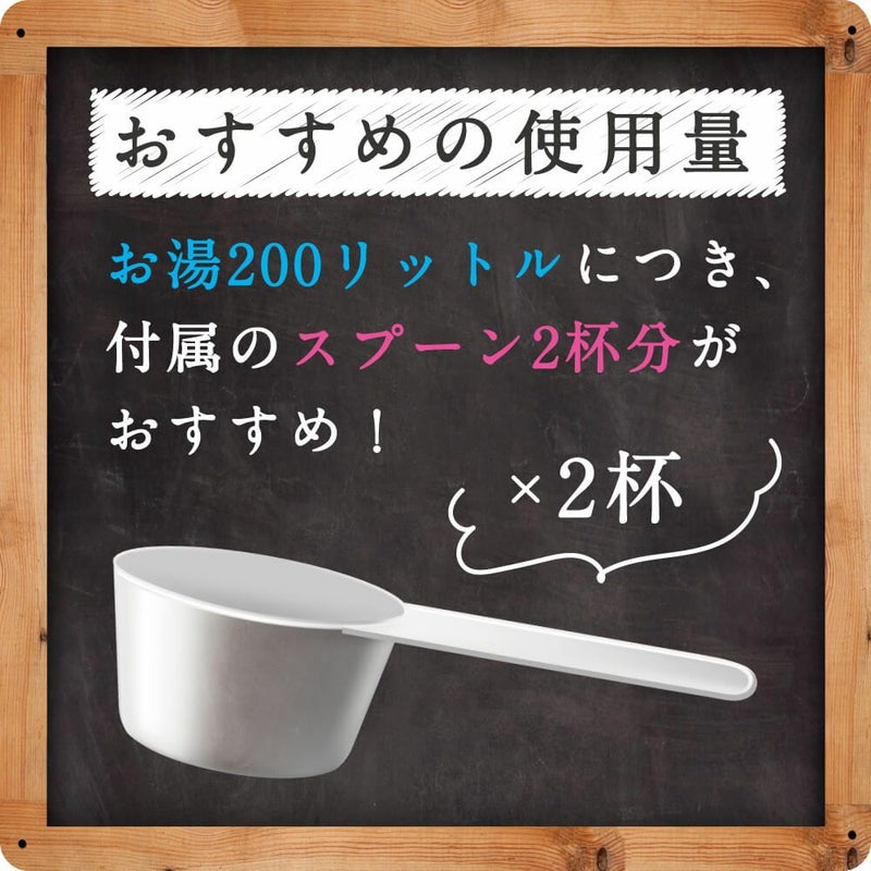 浴槽のお湯(200L)に本品100gを入れ、よくかき混ぜながら溶かして入浴してください。