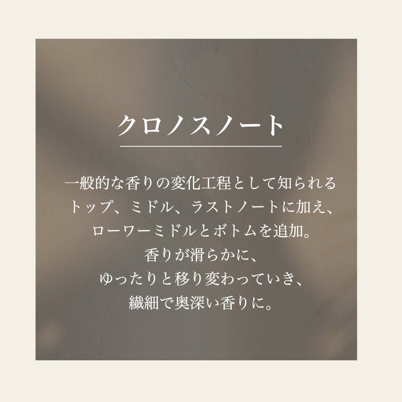 ガルバナムやパセリのグリーンハーバルに、樹木とムスクが奥行きをもたらす