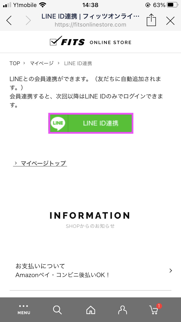 通常通りログインしていただき、マイページの【LINE ID連携する】をタップ。