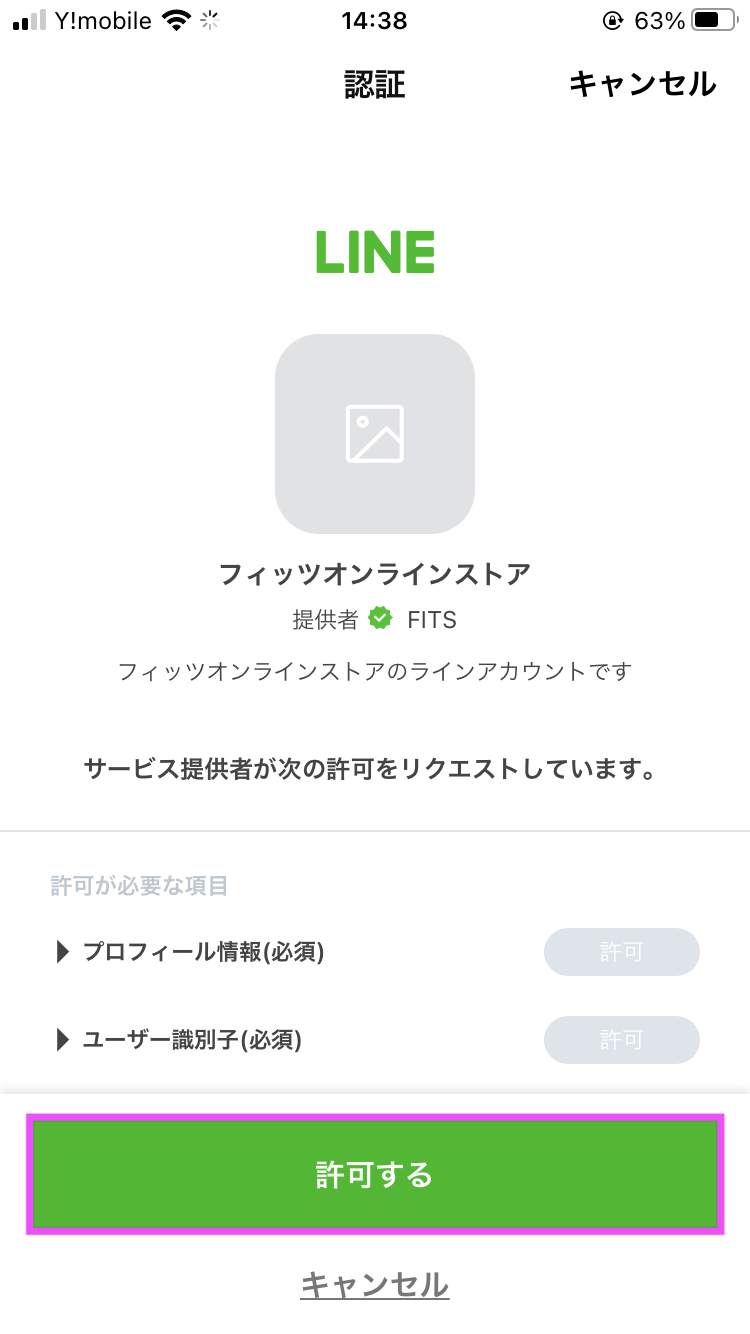 承認画面が表示されますので 、【許可する】を タップしてください。