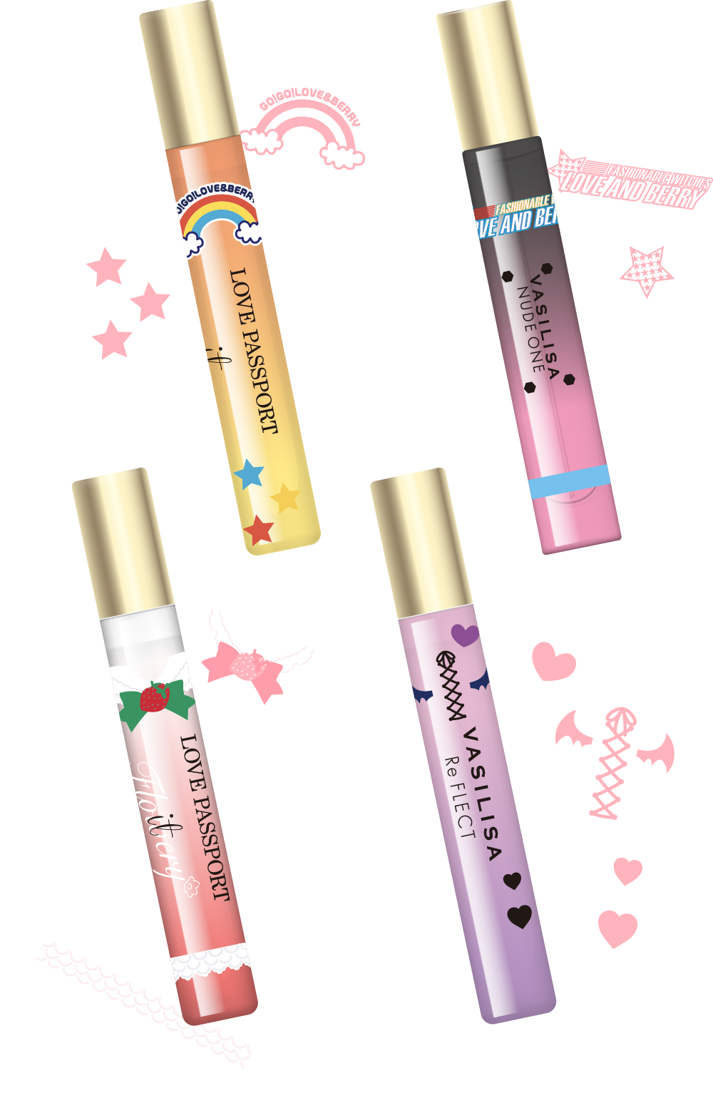 FRAGRANCE ラブ パスポート イット げんきでキュートなコーデにぴったり♡シュガリーアップルの香り ヴァシリーサ ヌード ワン クールでオトナなコーデにぴったり☆アップルプラリネの香り ラブ パスポート イット フラワリー とびきりラブリーなコーデと相性◎シュガリーブーケの香り ヴァシリーサ リ フレクト はなやかでプリティなコーデと相性◎フローラルソープの香り