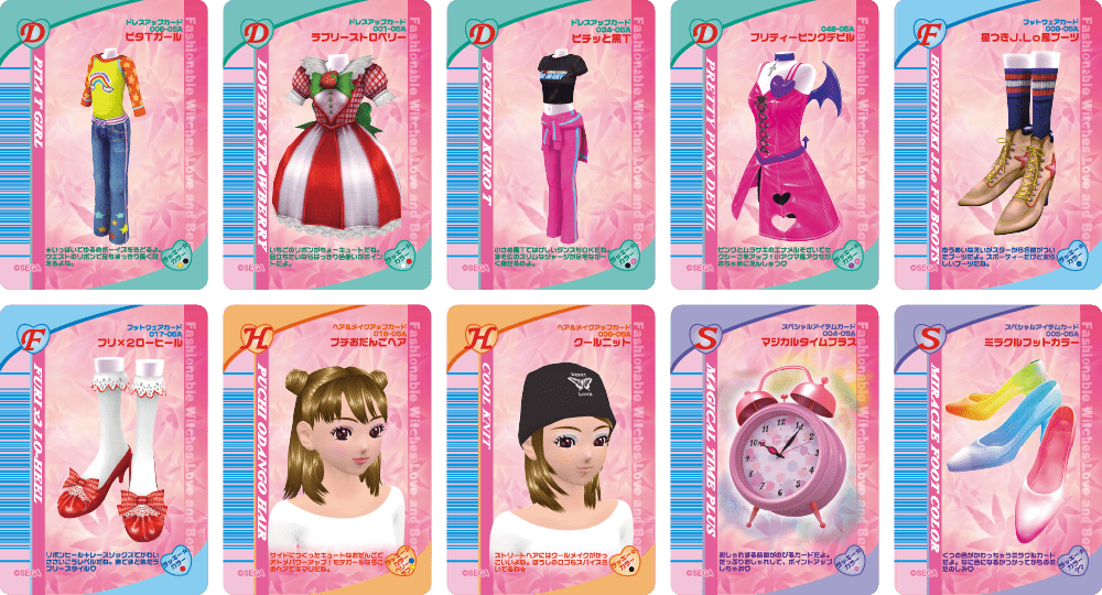 2004 年に登場し小学生女児を中心に大ブームを巻き起こした株式会社セガのキッズカードゲームです。 「オシャレまほうカード」で、キャラの着せ替えが楽しめるほか、ダンスステージでは「いけてる度」をアップさせ、ライバルと競い合うことができます。