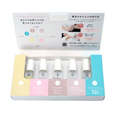 楽しみにしていたフレグランストライアルセット。 どの香りを本品で買うか悩んだためこちらを購入。 でも、全部2mlって書いてあるのに明らかに4番だけ 量が少なかった。。 香りはどれも良くて気分で変えたい。 パケは小さくてカラフルでかわいい。